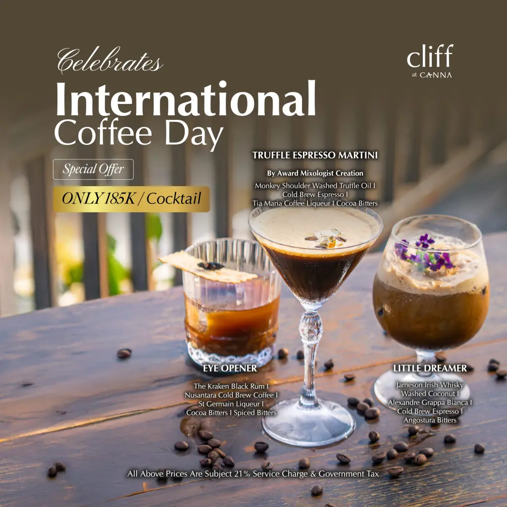 Raise your glass and celebrate International Coffee Day with our special coffee cocktails, crafted to perfection by award-winning mixologists.